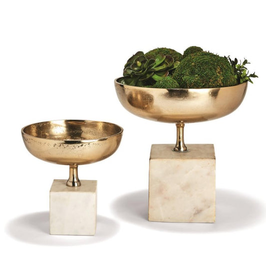 Set of 2 Chalice Bowl Sculptures on Marble Base - Recycled Aluminum/Bronze/Marble