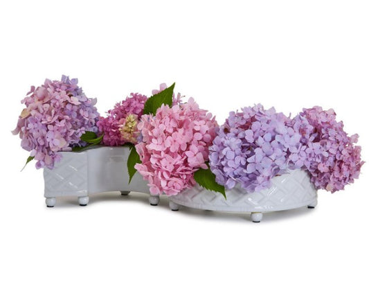 Faux Bamboo Fretwork 3 Pc Flower Arranger Set - Porcelain